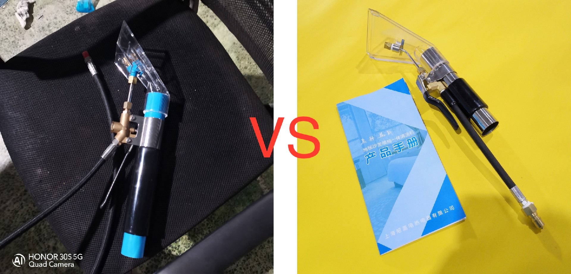 1. The conventional sofa picks up the head so that no water leake 2. With baffles, it is not easy to spill water 3. Matching 1.2m high-quality steam hose, a hose cost more than USD30 4. The valve is made of durable, aluminum alloy rod after referringto all the disadvantages of the head in the market. When cleaning the sofa, the valve will not touch the sofa because it is higher than the sofa surface! | 1. Less material is used, such as short tube, which is not easy to use 2. The valve is used for a period of time, and the closure is not strict, that is, the valve is closed 3. Not tight, keep dripping! The quality is not good 4. The rubber hose matched with the hose can only be used for low temperature, 5. Do not pass the steam, the steam will bulge, safety issues! | 1. The appearance is low, the workmanship is rough, and the card sleeve is welded 2. The water spray is too large, the experience is not good 3. No set of high-quality steam hose, an 1.2m high-quality hose is USD30! 4. Low quality and low price |